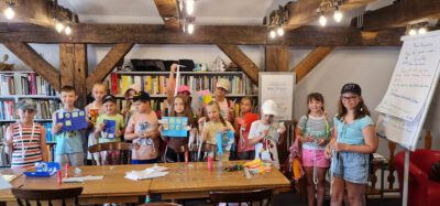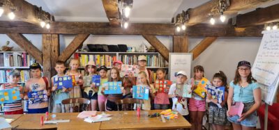 W ramach bibliotecznego projektu „Kreatywność. Bliskość. Innowacja. Różne oblicza książki” w środę (20.07.) i piątek (15.07. i 22.07.) wspólnie z uczniami Szkoły Podstawowej nr 1 Szkoły Podstawowej nr 2 w trakcie warsztatów rękodzielniczo-literackich „Odlotowy lapbook z Marią Konopnicką” tworzyliśmy lapbooki. Lapbook inaczej książka na kolanach, to forma kreatywnego przedstawiania informacji. Nasze lapbooki zawierały informacje na temat życia i twórczości Marii Konopnickiej – polskiej poetki i nowelistki okresu pozytywizmu, a także krytyka literackiego, publicystki i tłumaczki; jednej z najwybitniejszych pisarek w historii literatury polskiej. Dziękujemy za kreatywny udział w zajęciach.