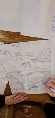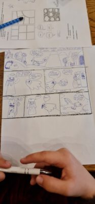 W poniedziałek, 7 listopada w Bibliotece odbyły się warsztaty komiksowe ze znaną polską autorką powieści – Joanną Jagiełło. W trakcie spotkania uczestnicy dowiedzieli się między innymi, w jaki sposób tworzy się komiksy i na co w trakcie tworzenia zwrócić uwagę. W drugiej części warsztatowej młodzież sama tworzyła swoje komiksy z losowo wybranymi bohaterami. Twórca komiksów musi wykazać się kreatywnością i wypracować swój własny styl rysowania. Być może wśród uczestników warsztatów jest przyszły autor rysunkowych historyjek. Dla przypomnienia, komiks to sekwencyjna historia obrazkowa, często z dodanym tekstem, publikowana w prasie lub w formie osobnych zeszytów, która wykształciła się jako odrębna forma wydawnicza na przełomie XIX i XX wieku z gazetowej grafiki satyrycznej. Najpopularniejsze i najbardziej znane komiksy na całym świecie to z pewnością serie o Supermenie i Batmanie, zaś w Polsce najpopularniejsza jest seria komiksów o Tytusie, Romku i A’Tomku autorstwa Henryka Chmielewskiego.