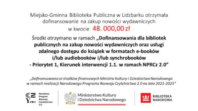 Dofinansowano ze środków finansowych Ministra Kultury i Dziedzictwa Narodowego w ramach realizacji Narodowego Programu Rozwoju Czytelnictwa 2.0 na lata 2021-2025″