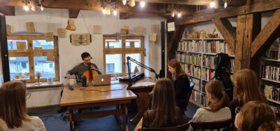 We wtorek 12 listopada w Miejsko-Gminnej Bibliotece Publicznej w Lidzbarku odbyły się niezwykłe warsztaty „Miksowanie poezji”, prowadzone przez multiinstrumentalistę Daniela Sobiesiaka. Wraz z młodzieżą licealną zanurzyliśmy się w wyjątkowy świat poezji, który zyskał nowy wymiar dzięki interakcji z muzyką. Daniel Sobiesiak, reagując na każdy wiersz, wprowadzał słuchaczy w nastrój utworów, podkreślając emocje i nadając im muzyczną głębię. To spotkanie pokazało, jak pięknie poezja współgra z muzyką, tworząc harmonijną i pełną pasji opowieść. Dziękujemy wszystkim za inspirujące chwile.