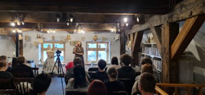 Szczególnym punktem spotkania był moment, w którym Barbara Klicka przeczytała kilka swoich wierszy, wprowadzając uczestników w ich niepowtarzalny rytm i klimat. Interpretacja utworów przez samą autorkę nadała im dodatkowej głębi i pozwoliła młodzieży lepiej zrozumieć ich sens.