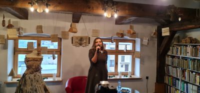 Barbara Klicka w niezwykle przystępny sposób opowiadała o swoich początkach w świecie literatury, dzieląc się inspiracjami i doświadczeniami związanymi z procesem twórczym. W trakcie rozmowy podkreślała znaczenie melodyjności i dźwięczności w poezji, wskazując, jak ważną rolę odgrywa rytm i brzmienie słów w budowaniu przekazu wiersza.