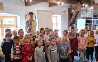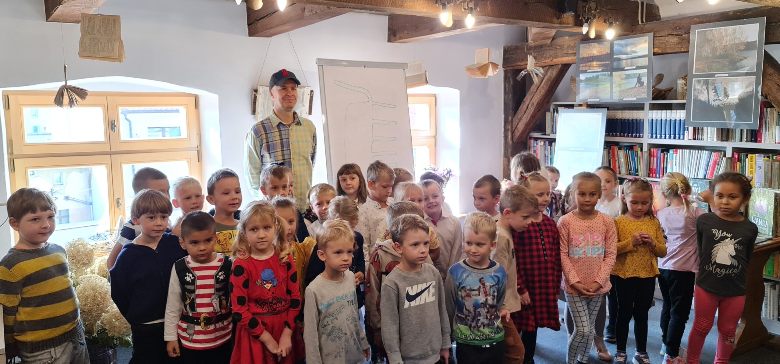 W piątek, 13 października przedszkolaki z Przedszkola Miejskiego w Lidzbarku wzięły udział w spotkaniu z autorem - Przemysławem Wechterowiczem. Autor w humorystyczny i barwny sposób opowiadał, o tym czym zajmuje się pisarz, a
