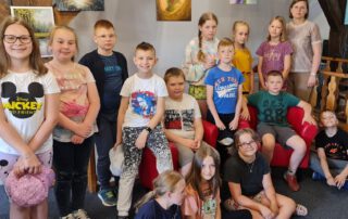 Dziś Bibliotekę odwiedzili uczniowie klasy 3b Szkoły Podstawowej nr 1. Dzieci zwiedziły wystawę malarstwa Pani Aleksandry Rychcik. Obrazy bardzo podobały się uczniom. Dziękujemy za wizytę.