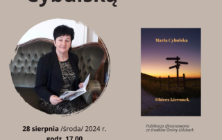 Serdecznie zapraszamy na promocję tomiku poezji Marii Cybulskiej, która odbędzie się w Miejsko-Gminnej Bibliotece Publicznej w Lidzbarku w środę, 28 sierpnia, o godzinie 17:00. To wyjątkowa okazja, aby spotkać autorkę, posłuchać jej poezji